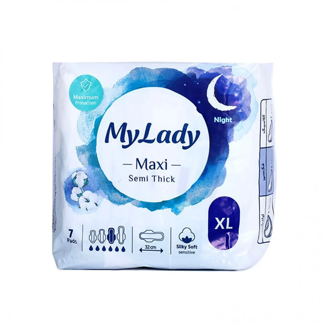 نوار بهداشتی مای لیدی پنبه ای مکسی نیمه ضخیم مناسب شب سایز xlتعداد 7 عددی