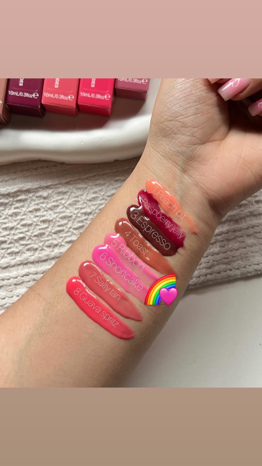 (روی کارتون و تیوپ اسم برند رود هک شده 🤓🍬) خوشبو خوش مزه پاستیلی شکلاتی ماندگاری عالی بسیار سبک روی لب بدون ایجاد چسبندگی و سنگینی ابرسان و مرطوب کننده لب ها دارای ۸ تا از پرفروش تربن رنگ های این لیپگلاس 📌🙂↕️