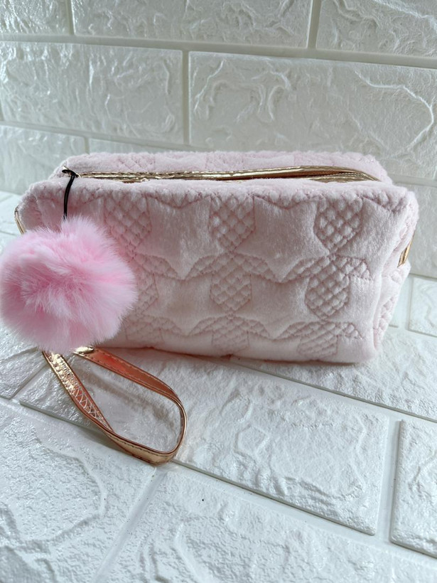 کیف آرایش پولیشی طرح ساده رنگ صورتی